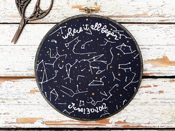 Custom Star Map, Star Map by Date Embroidery, Custom Constellation