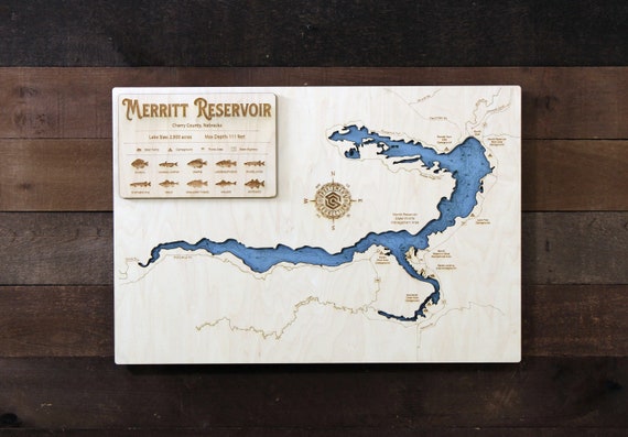 Merritt Reservoir cherry Co, NE Wooden Engraved Map, Wall Art