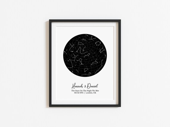 Night Sky Map Tonight, the Stars on the Night We Met, Custom Star