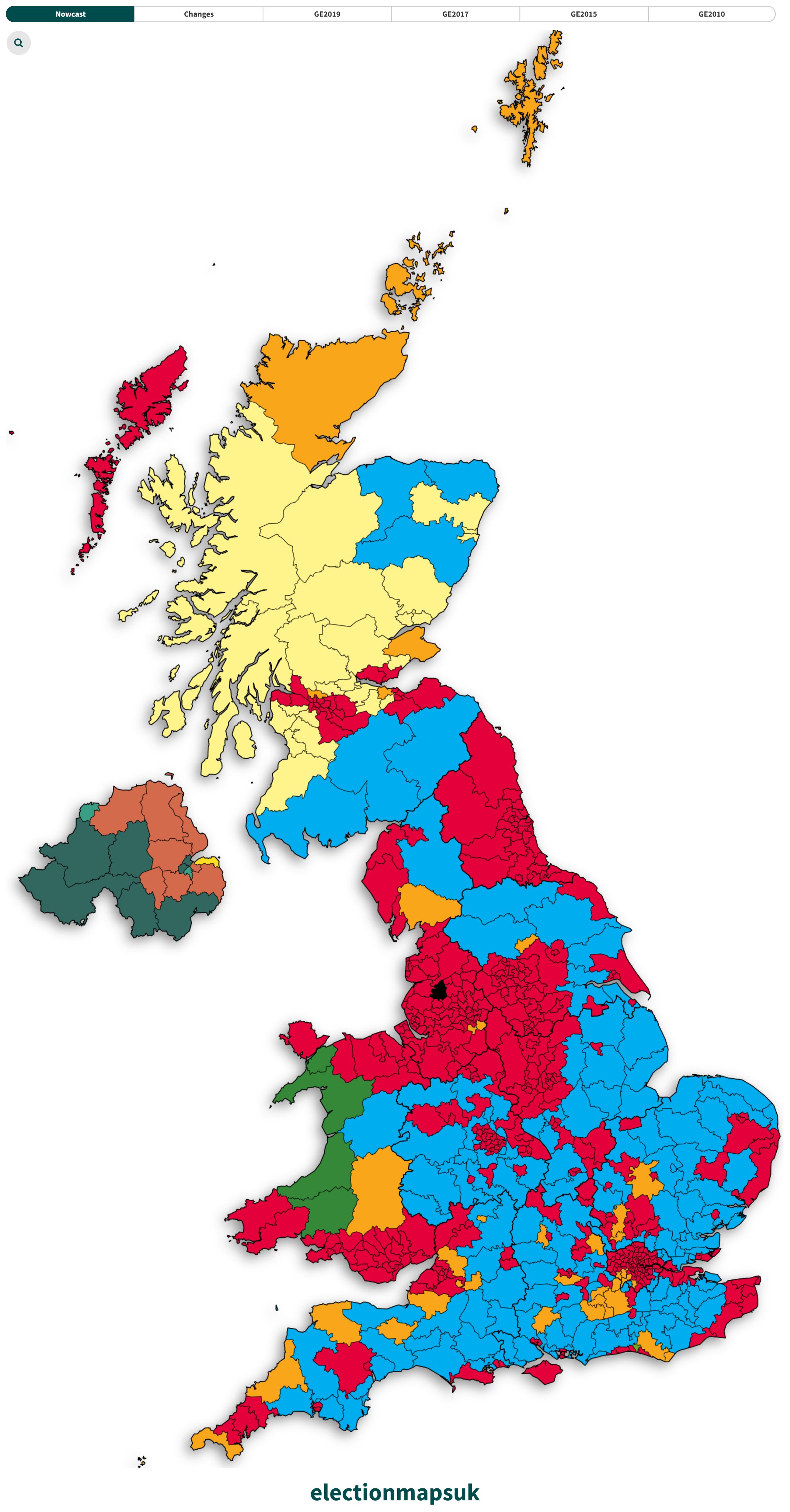 Election Maps UK on X: “Nowcast Model + Interactive Map (15/07